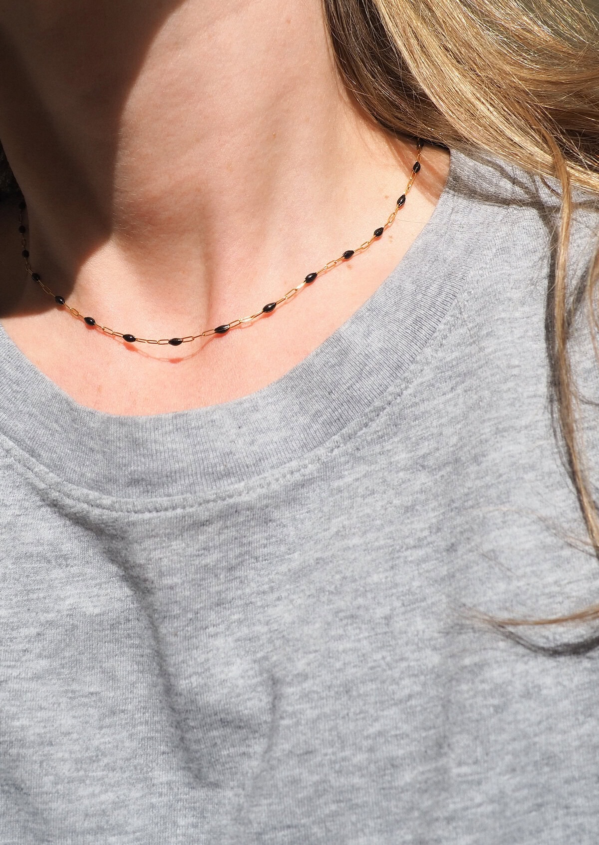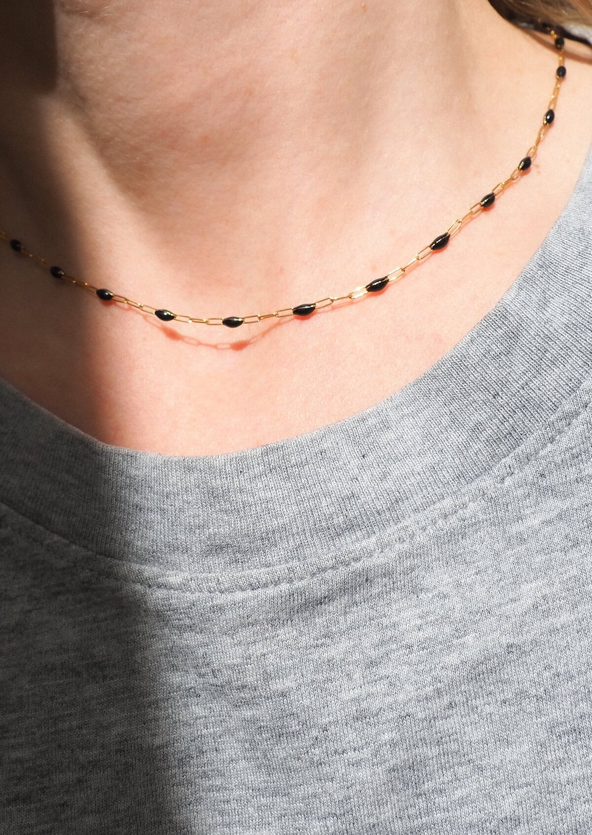 A necklace made out of deep black enamel and gold-plated silver. A versatile piece that adds instant elegance to any outfit.
