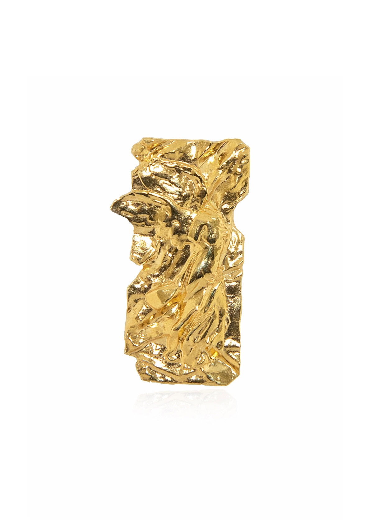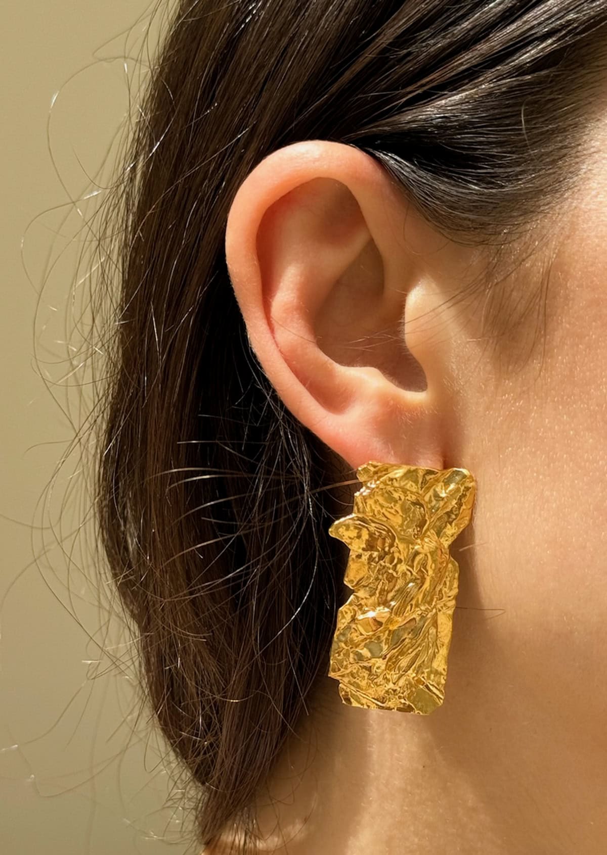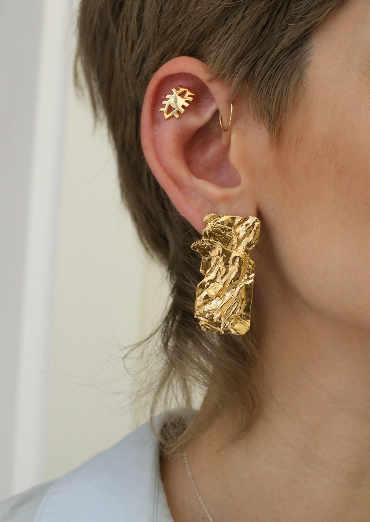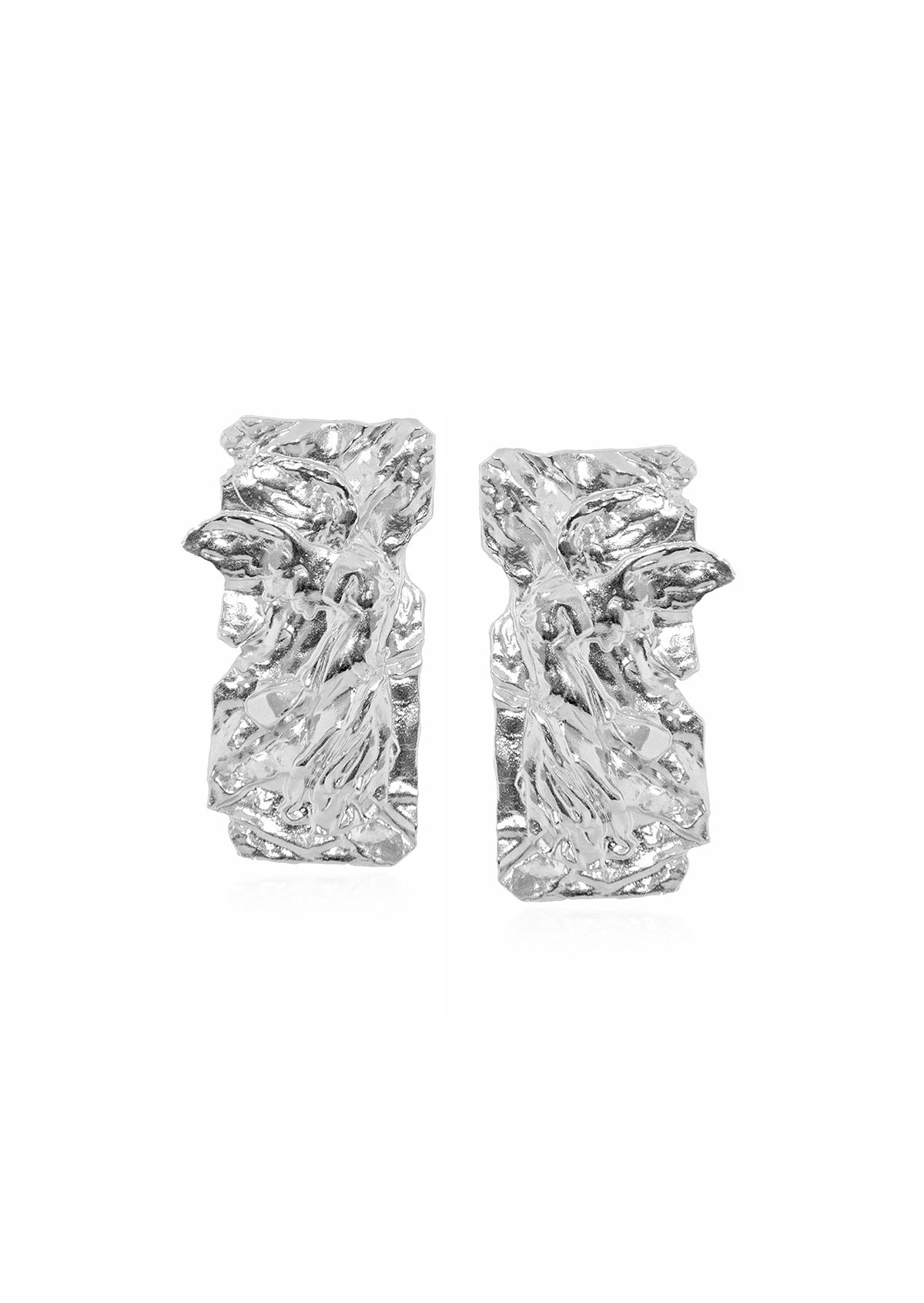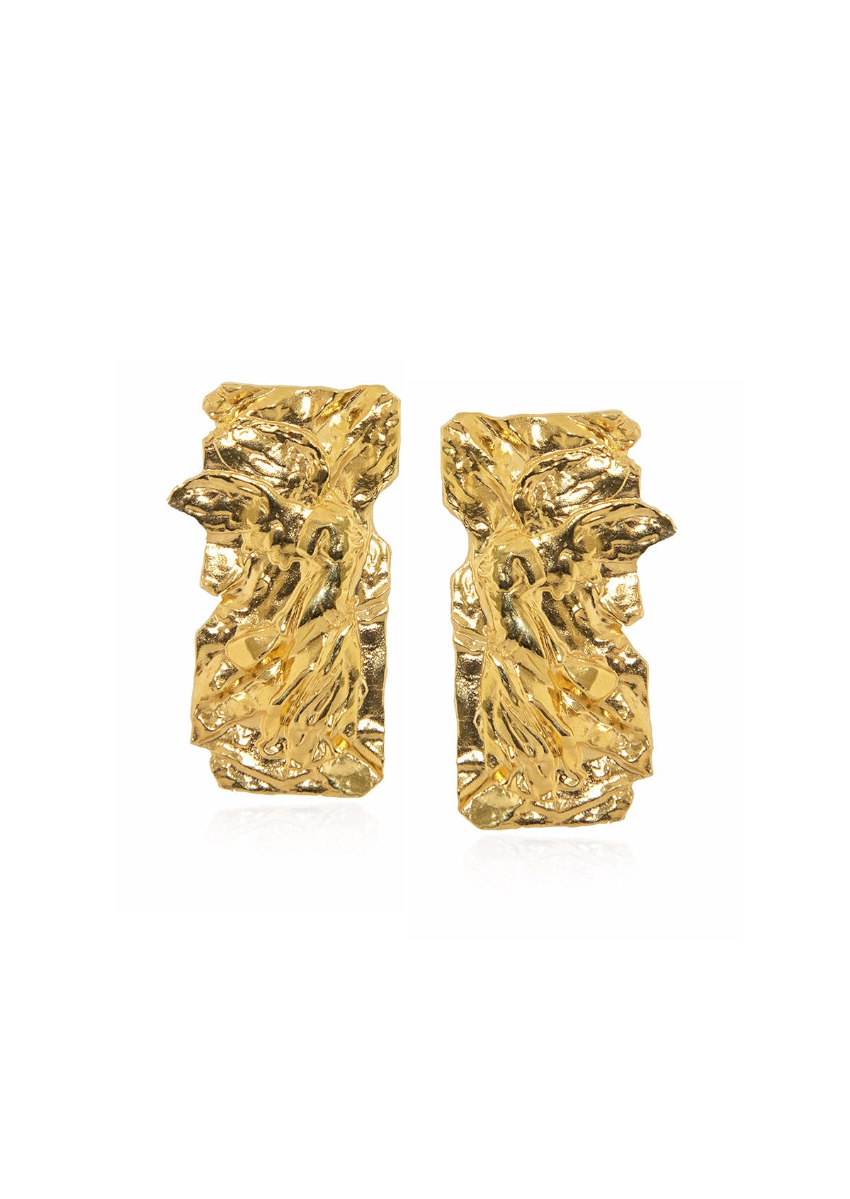 Not your classic statement earrings! A pair of geometrical foil earrings featuring the Greek goddess of Victory, Nike, in sterling silver or dipped in a delicious layer of gold. Style them with minimal clothing and allow them to be the star of your look.
