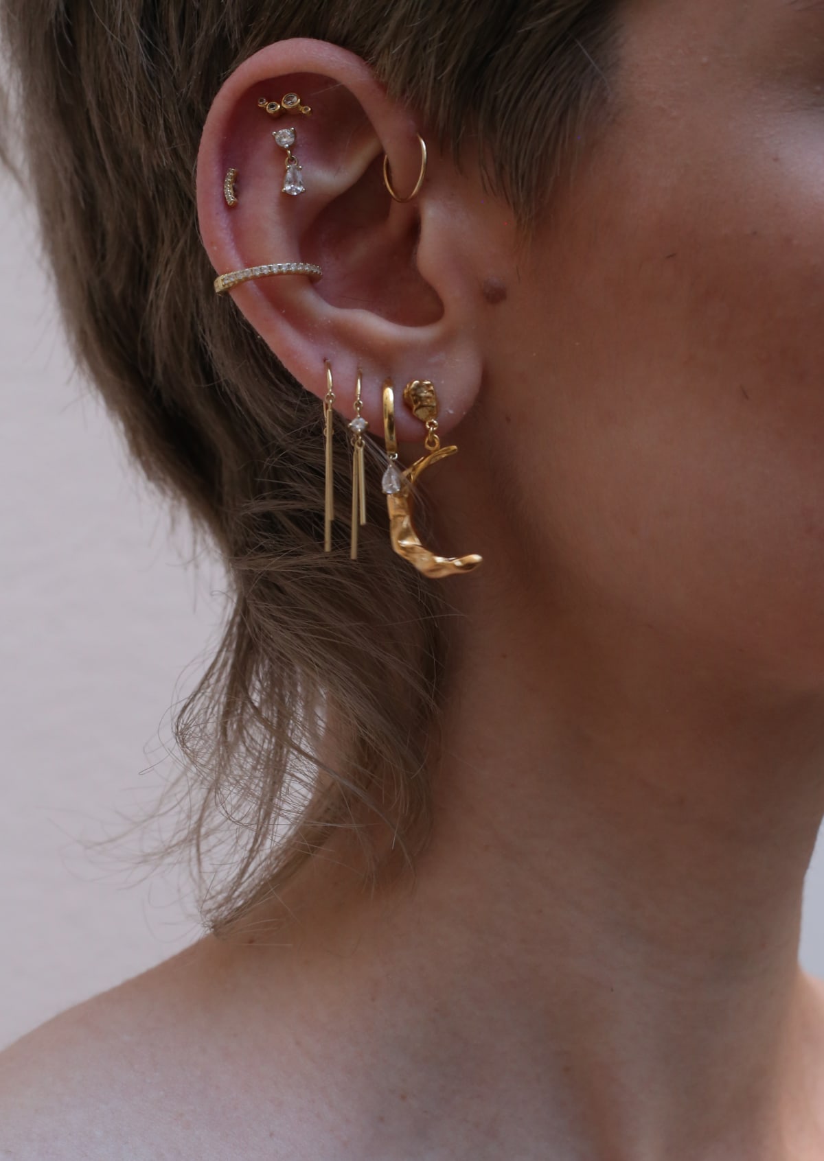Dreamy duo: A hanging crescent moon paired with a chunky baroque pearl. This might just be the perfect earring combo!