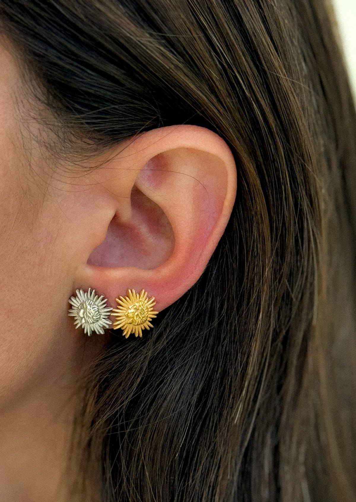 A pair of tiny sun stud earrings, every bit as merry as the sun. The ultimate symbol of passion and divinity, the sun stands for all the great things in life. Uplifting jewelry!