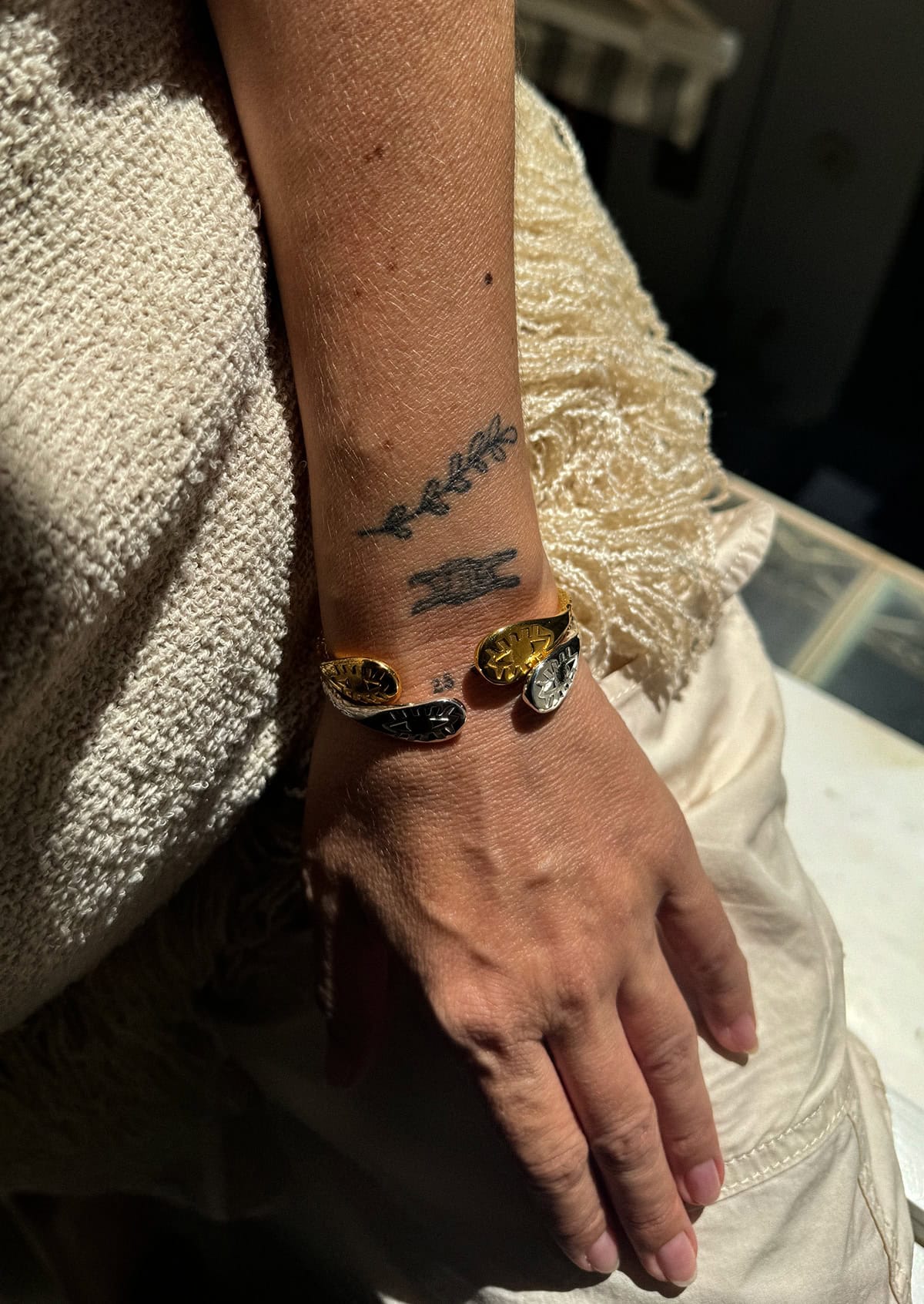 This cuff is a celebration of the glorious return of bangle bracelets. There’s no right or wrong way to wear the bangle trend- get creative!