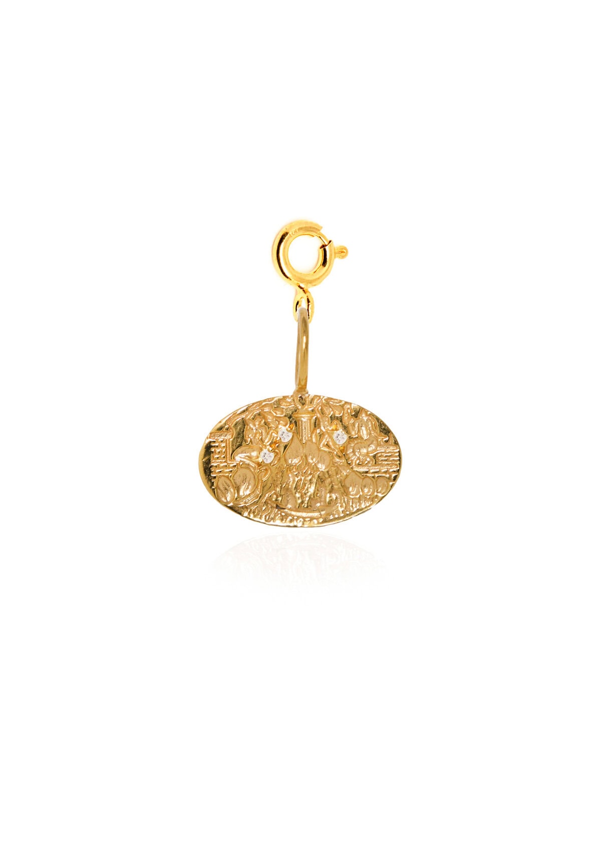 Wearable history: A charm inspired by the legendary ring of king Minos of ancient Crete. The scene depicted on the charm is a summary of the Minoan conception of the divine and the unity of the universe, and it is adorned with 3 zirconia gemstones. The perfect add-on to your favorite chain and beaded necklaces.