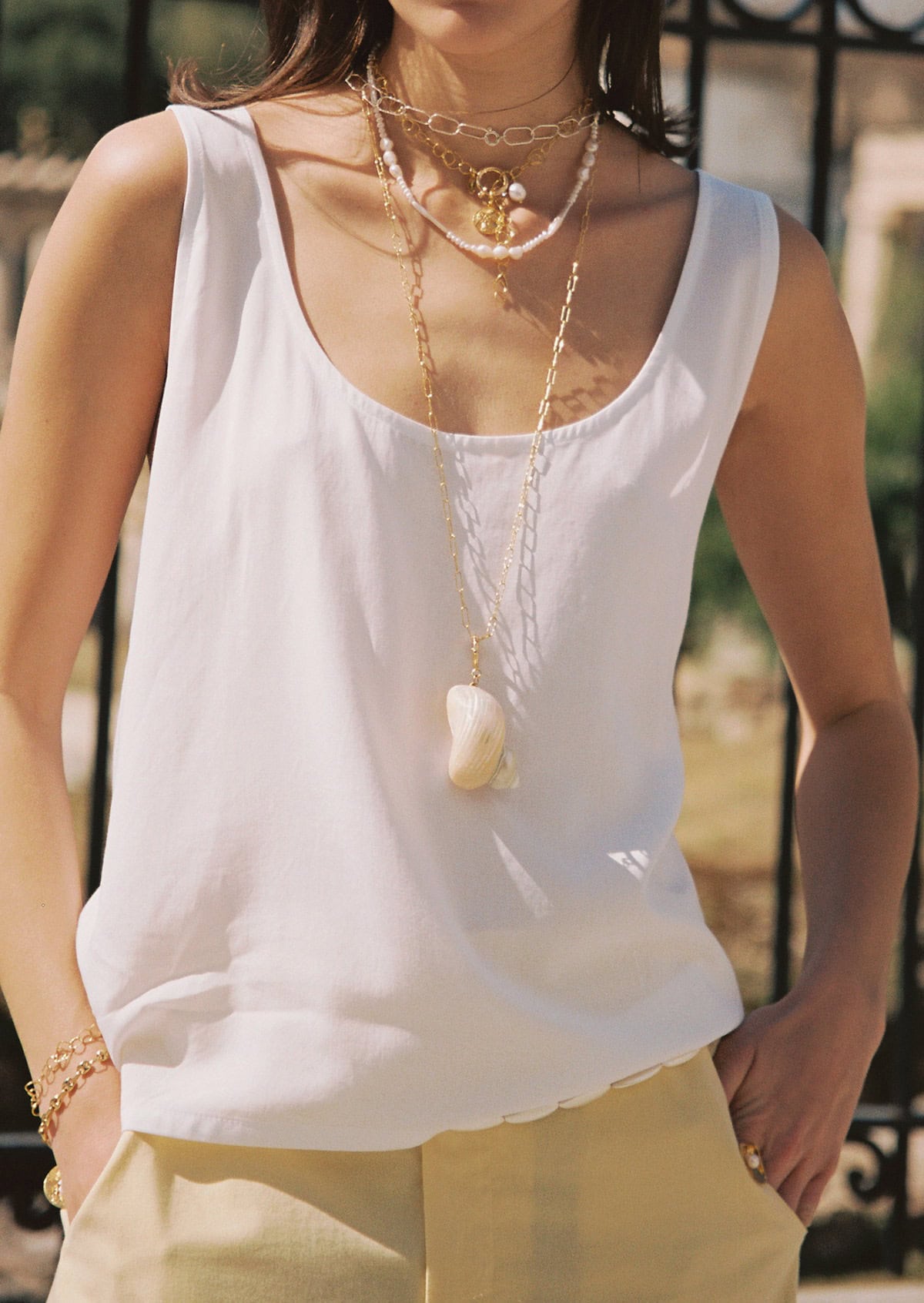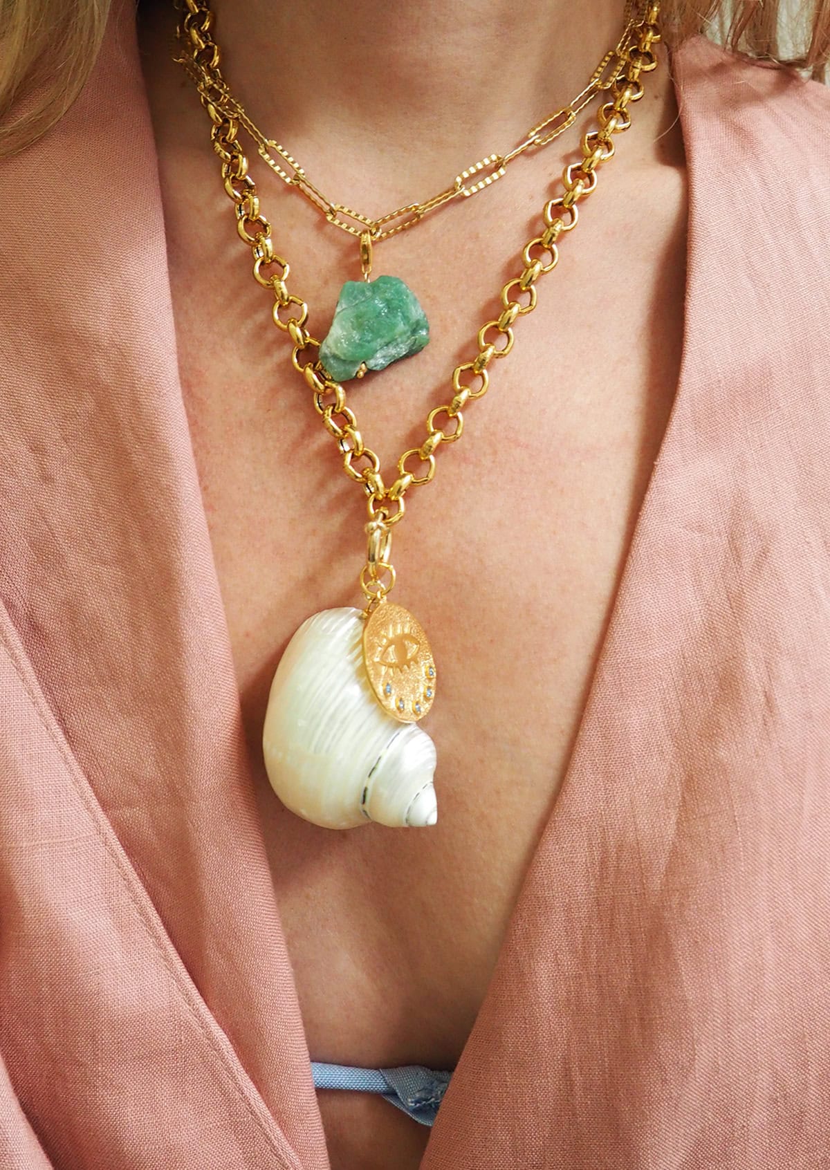 A statement, natural seashell charm to add to your Hermina bracelets and necklaces that also works as a clip-on accessory for clothing, bags and anything in between.