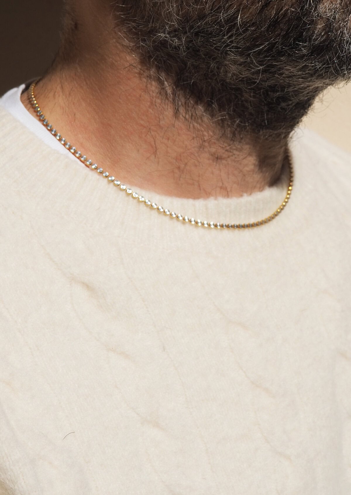 A gold-plated chain crafted with a diamond-cut technique that catches the eye from afar.