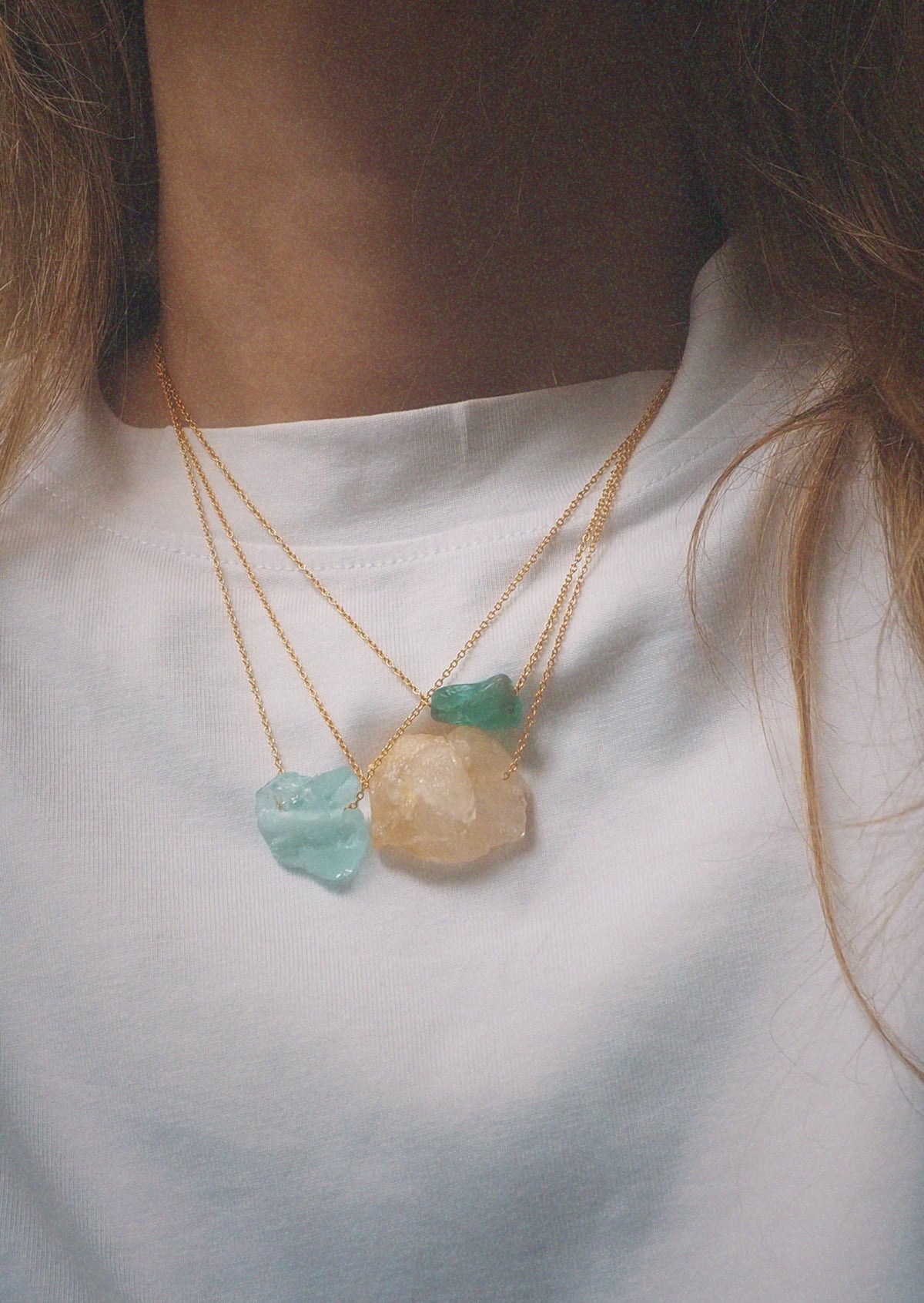A thin chain necklace with a chunky semi-precious stone, every bit as delicious as Loukoumaki, the Greek soft, sugar-coated sweet it is named after.