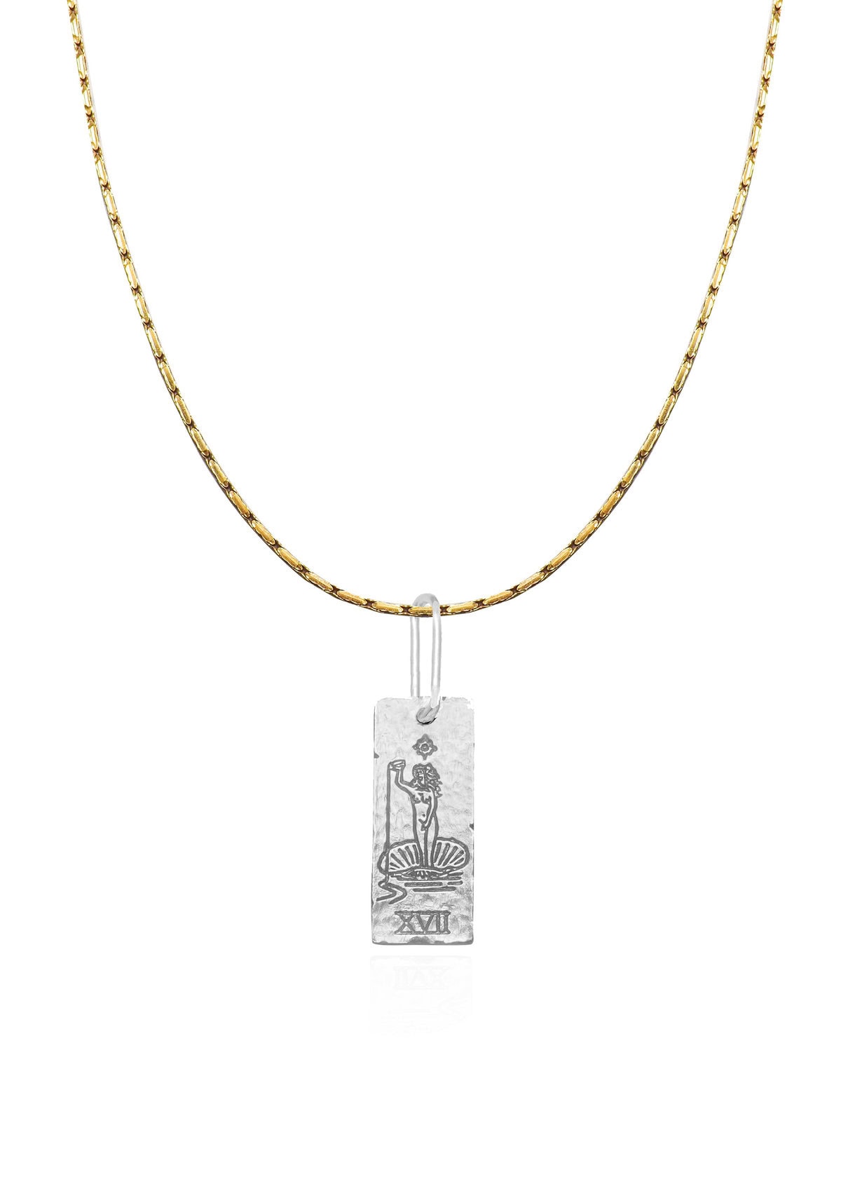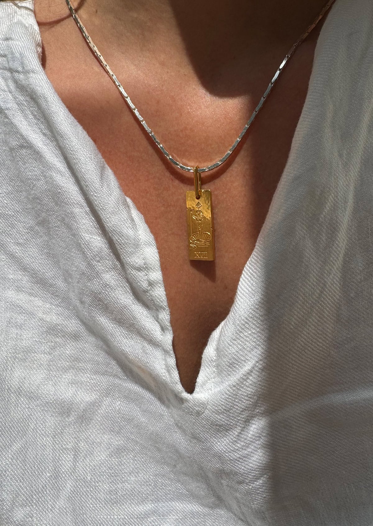 A glossy chain adorned with a charm depicting Aphrodite, the ancient Greek goddess of love, beauty and pleasure. An ultra-feminine piece charged with the allure of the ultimate beauty archetype.