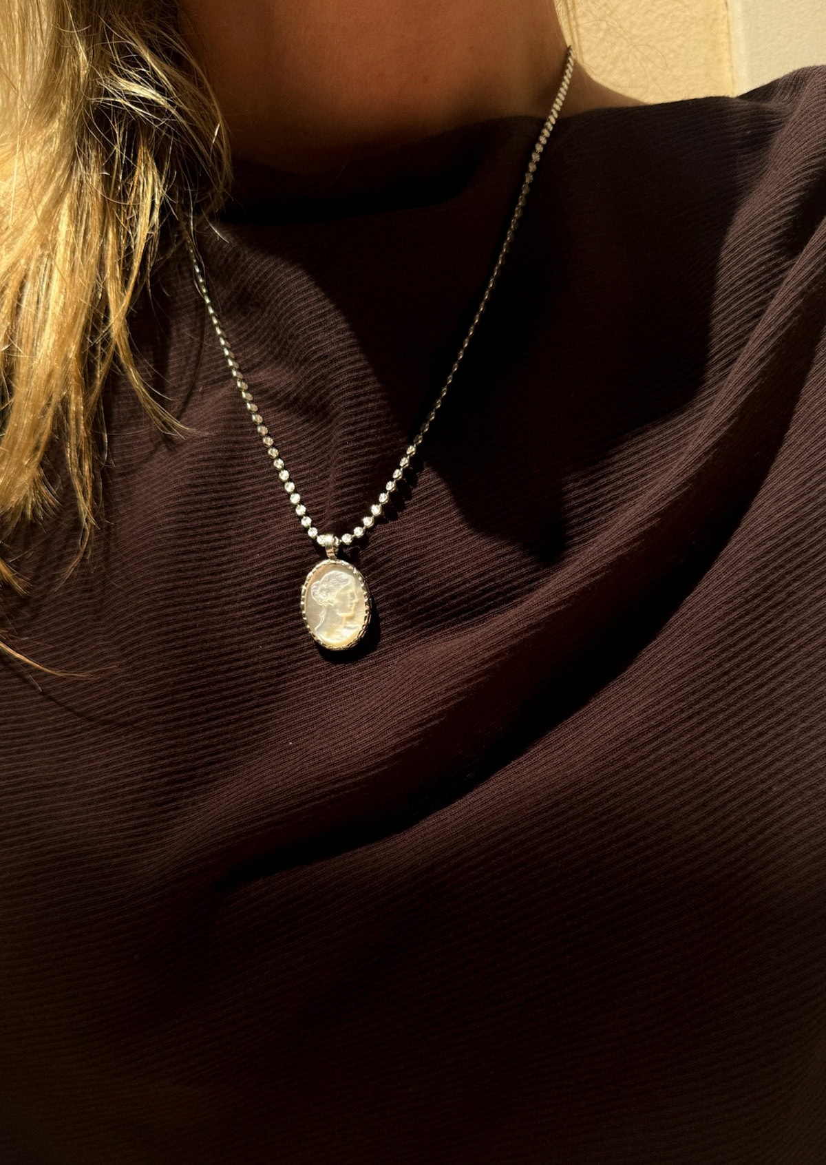 Ygieia Cameo Pearl Necklace Silver