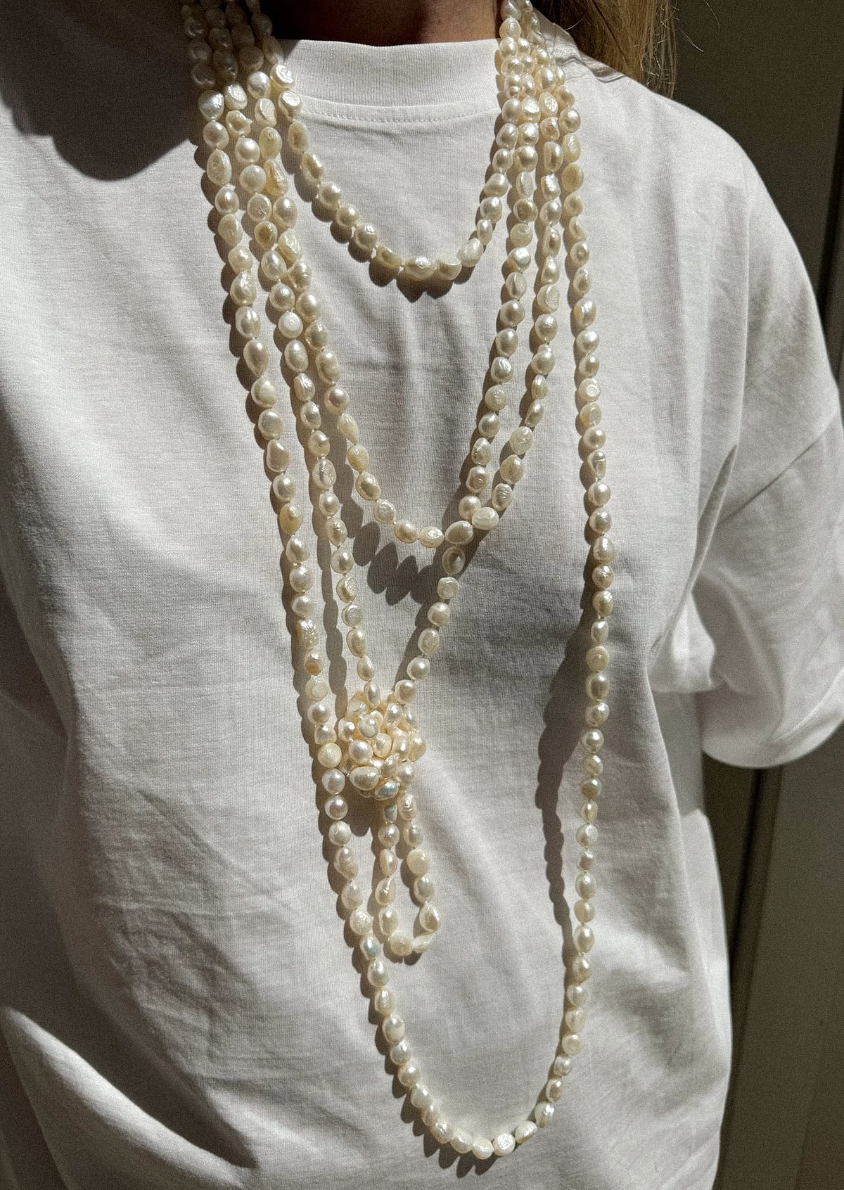 Timeless, versatile, and endlessly chic — the Vilma Pearl Long Necklace is a modern take on our classic Vilma Pearl Necklace. Featuring luminous pearls in an elegant long-line design, this piece is the definition of effortless sophistication. Its unique length allows for endless styling possibilities: wear it long for a sleek statement, wrap it for a layered look, or knot it for a touch of vintage flair.