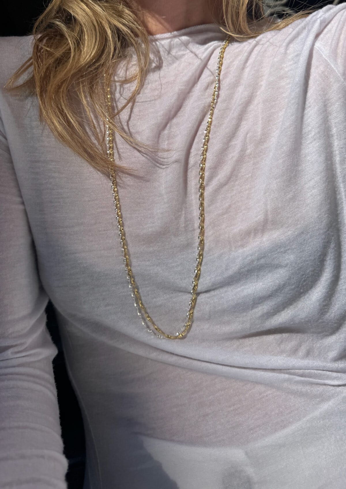 Yay for a modern and twist-ed chain! It’s so distinct you can stack as many as you want above it and it will still be the one that you get compliments for!