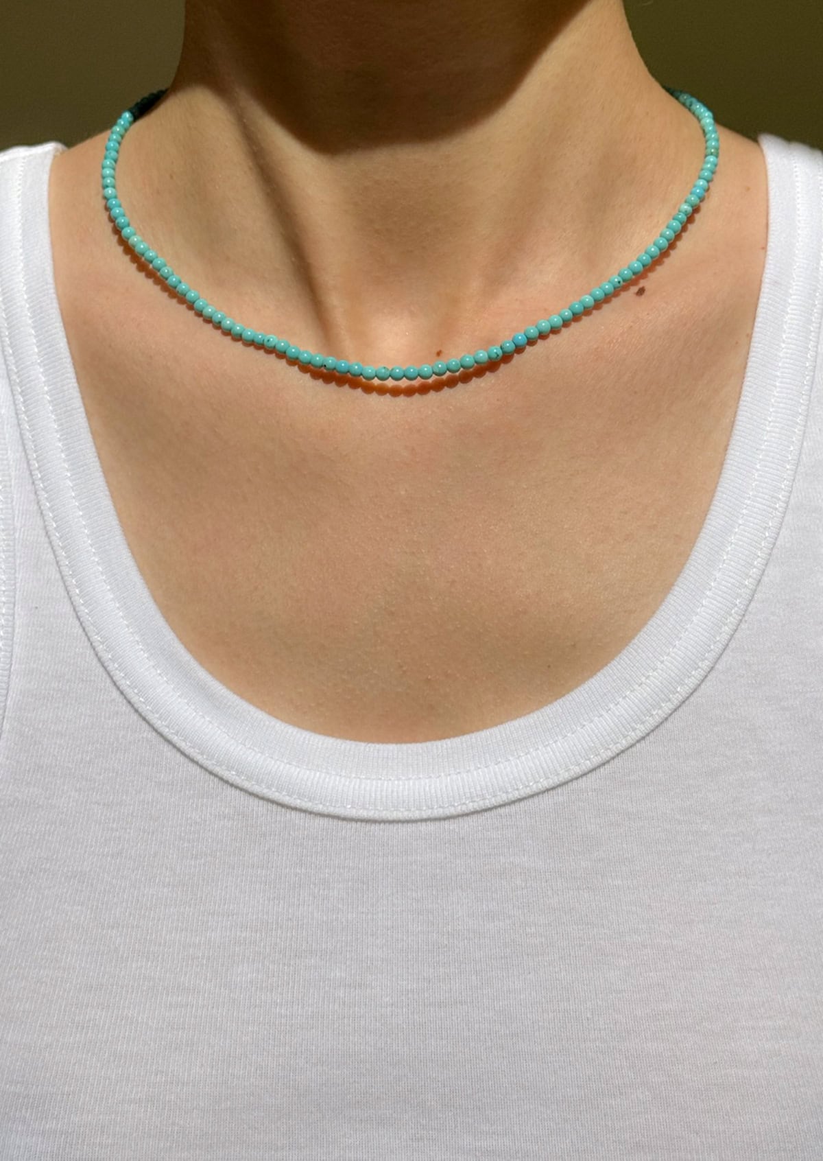 Strung with turquoise howlite semi-precious stones, this necklace is pure joy!