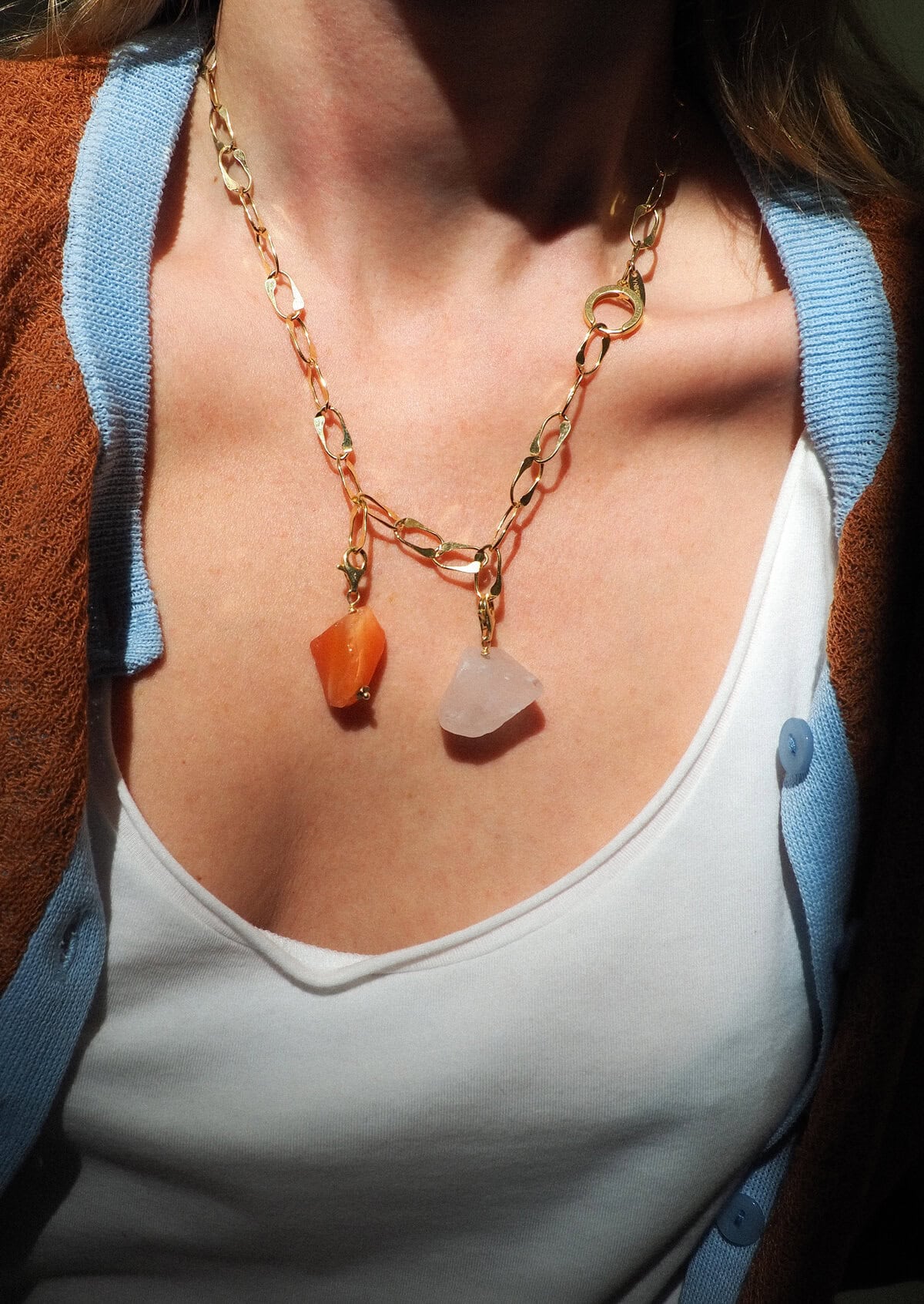 Materials: Gold-plated Sterling Silver 925, Pink Quartz, Orange Aventurine
