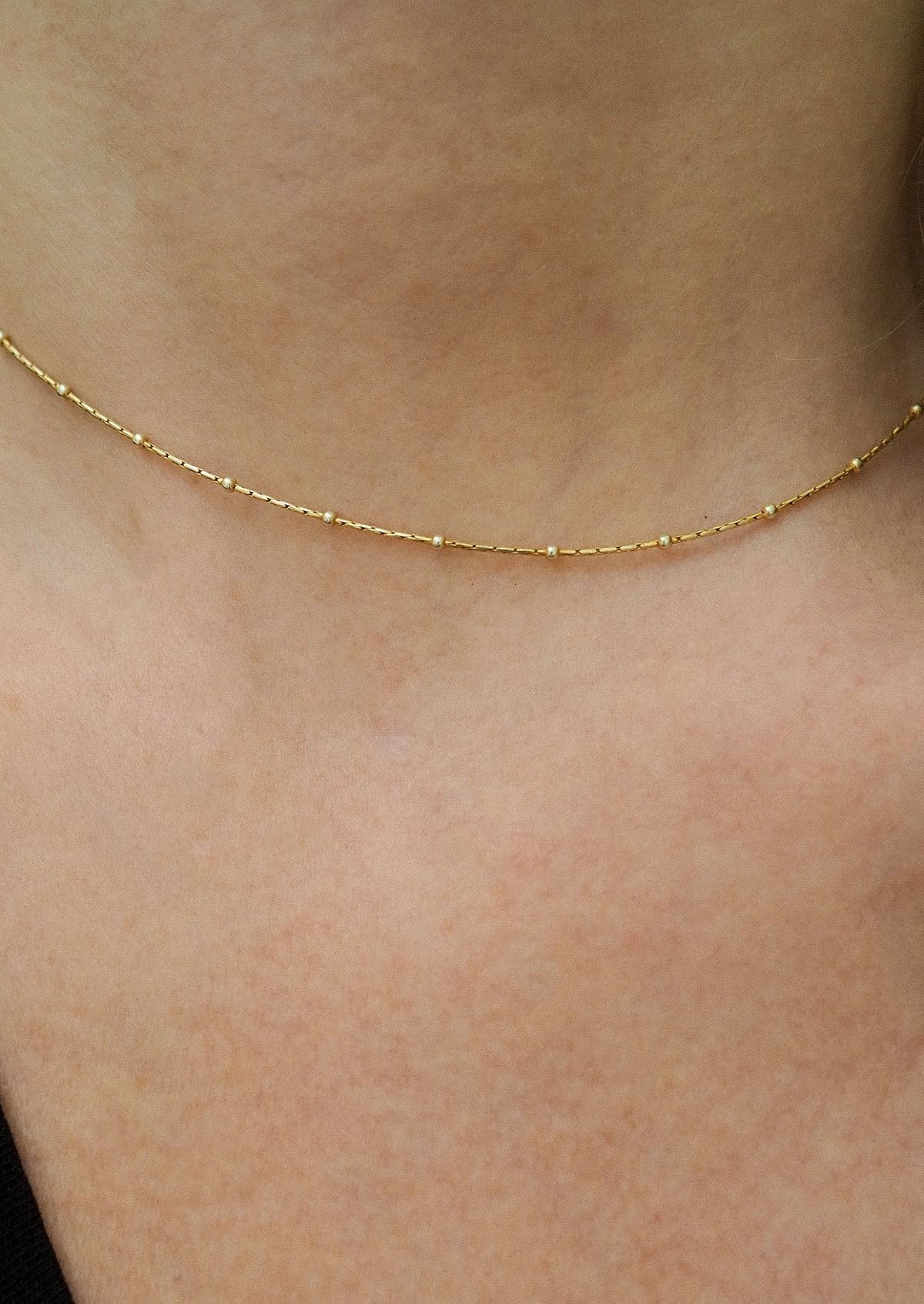 A delicate chain adorned with tiny gold elements for that extra ‘’Je ne sais quoi’’. A perfect piece for layering that can be worn solo or combined with any of the Hermina signature charms.