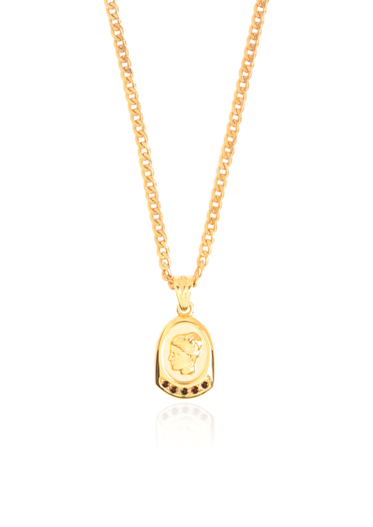 In Greek mythology, Hygieia (meaning “health” in Greek) was one of the sons and daughters of the God of medicine, Asclepius. She was the Goddess of the health of both the body and the soul. This gold-plated charming necklace, 2.5mm in width is designed to touch your collar bones making your outfits very graceful!