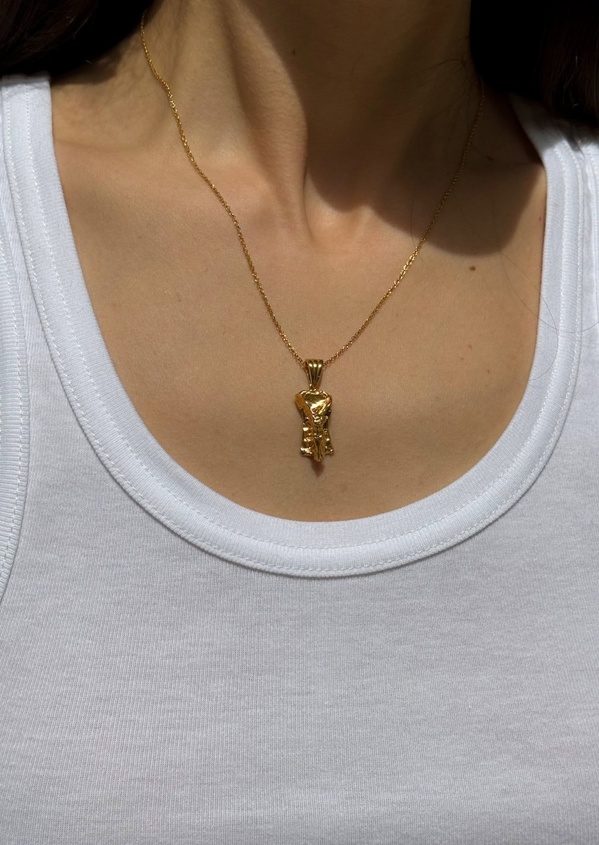 An angel-like figure of the Greek goddess of Victory, Nike, paired with a delicate chain necklace. The perfect base for layering.