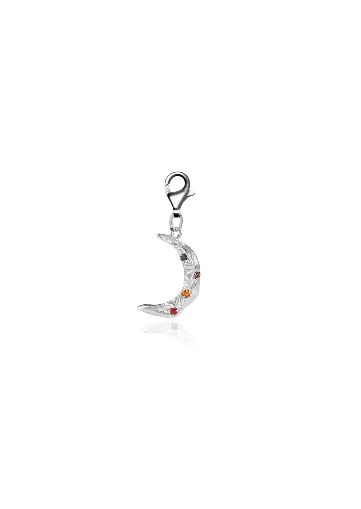 Wrinkled moons and colorful stars inspired by George Méliès who was a French illusionist and director of films involving strange and surreal journeys. A shapely 925 silver gold-plated small moon with colorful zirconia gemstones that you can match with any of our thin chains.