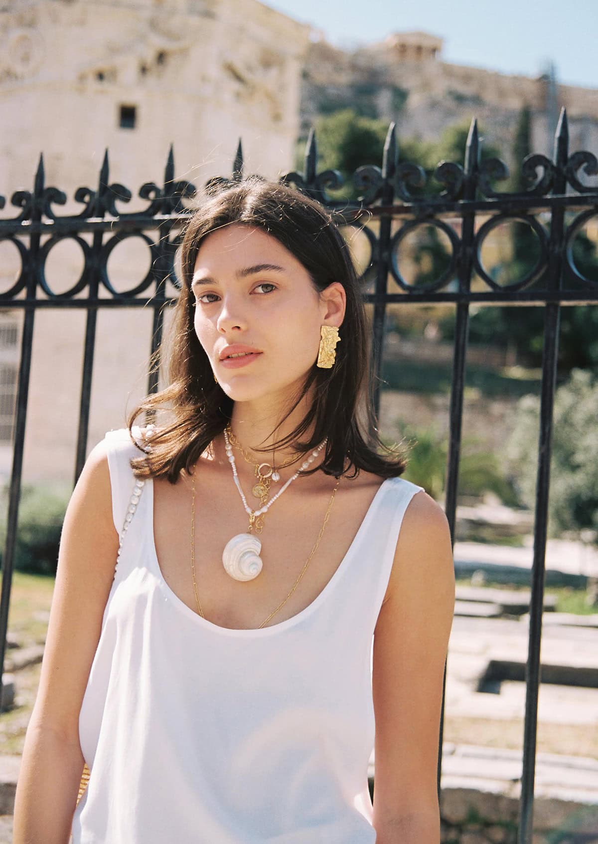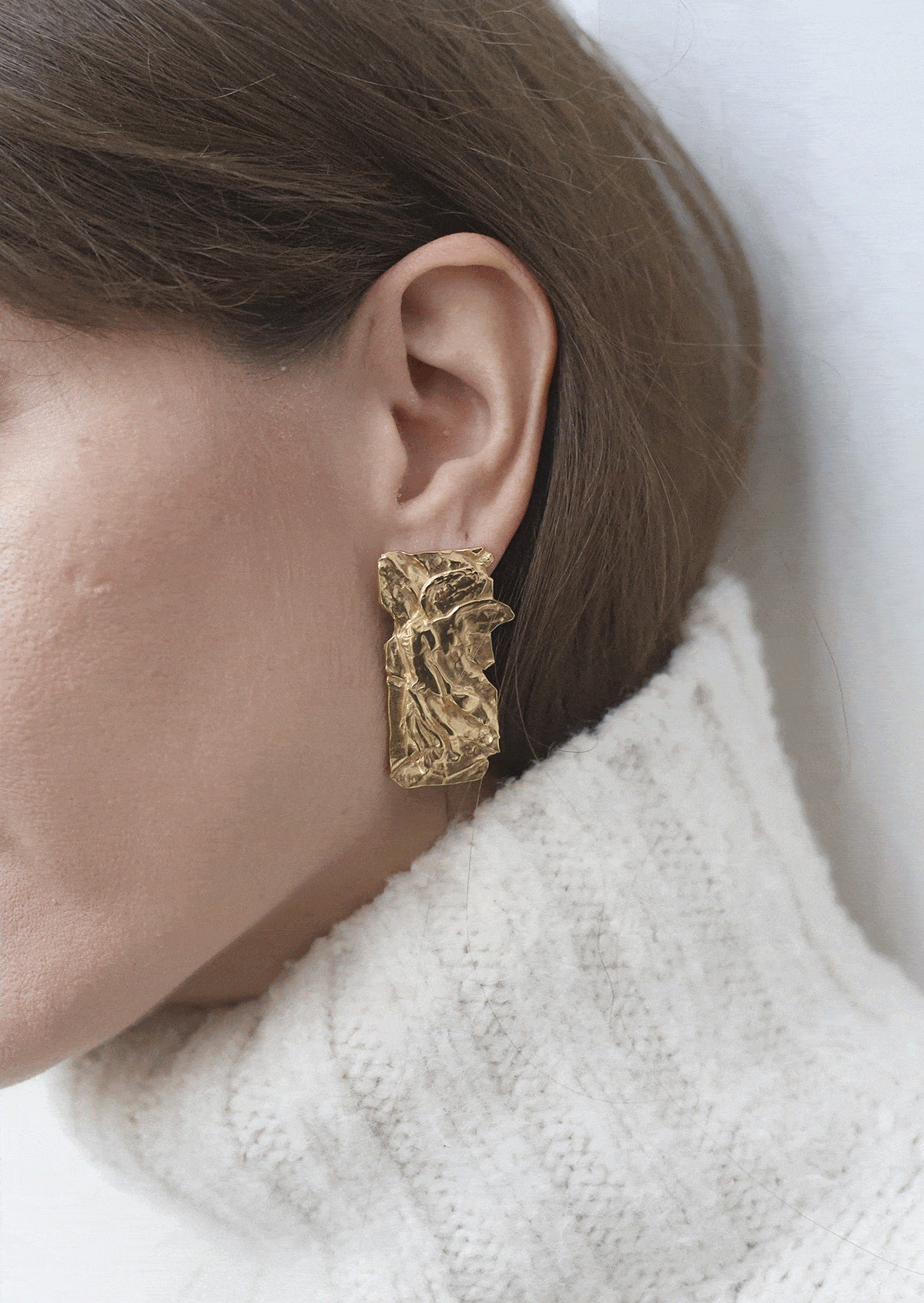 Not your classic statement earrings! A pair of geometrical foil earrings featuring the Greek goddess of Victory, Nike, in sterling silver or dipped in a delicious layer of gold. Style them with minimal clothing and allow them to be the star of your look.