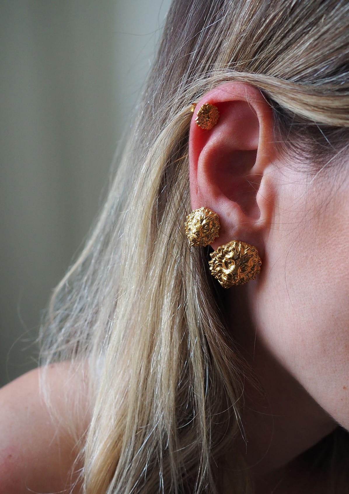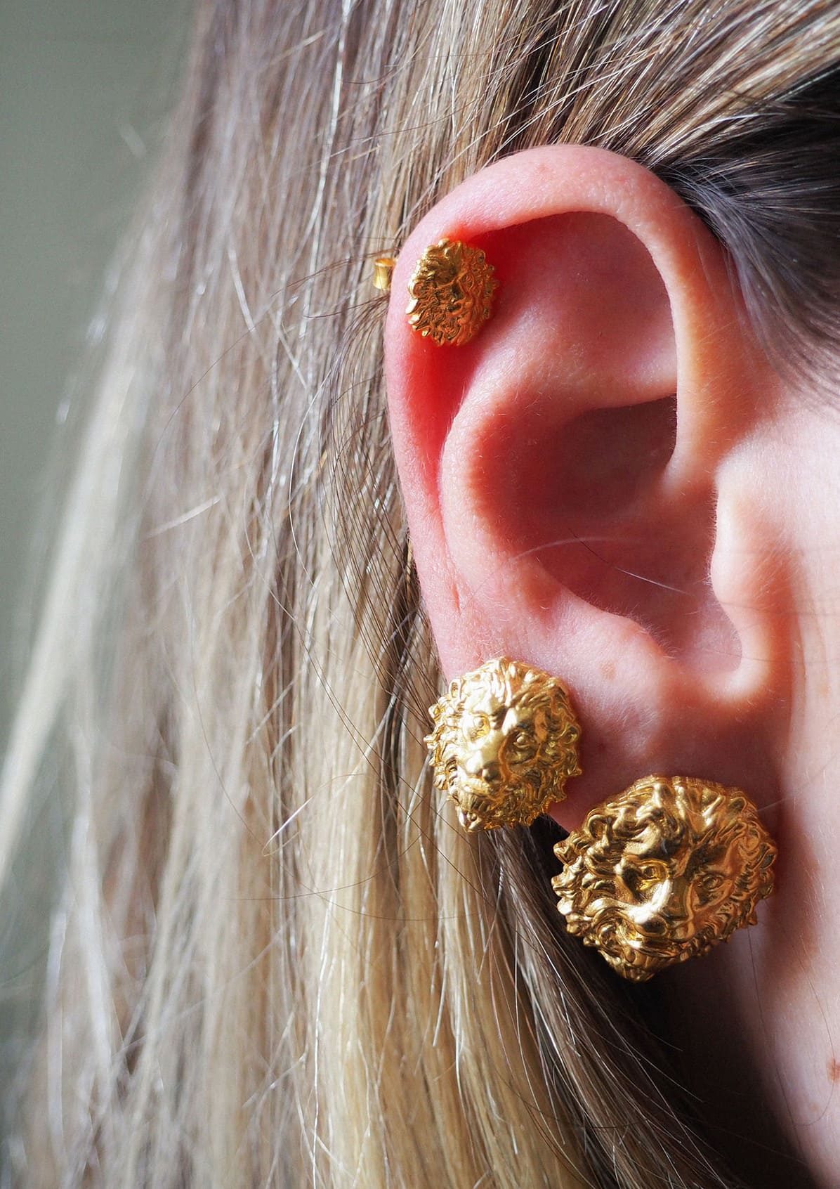If you are not bold enough but still want to show your teeth, go for the Thireos large pin earrings. Gold matches with everything and of course you are in the right mood anyways!