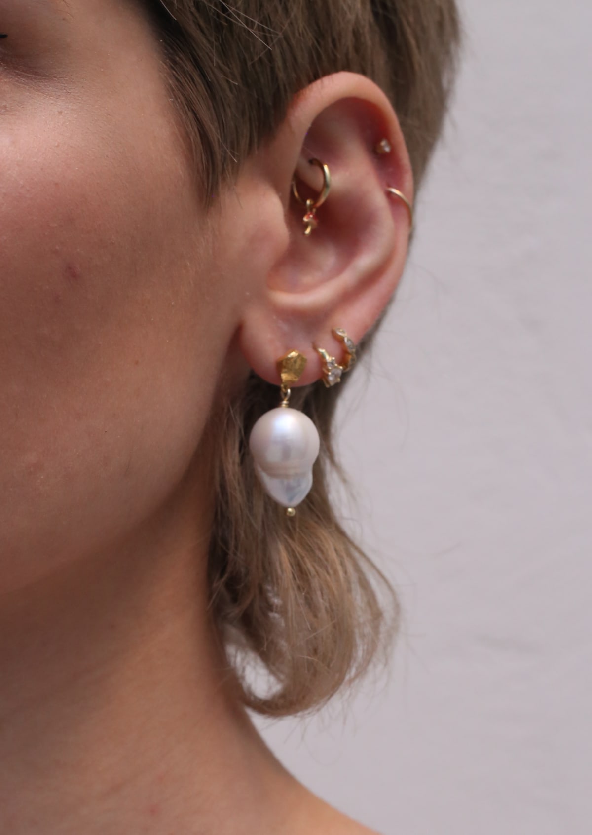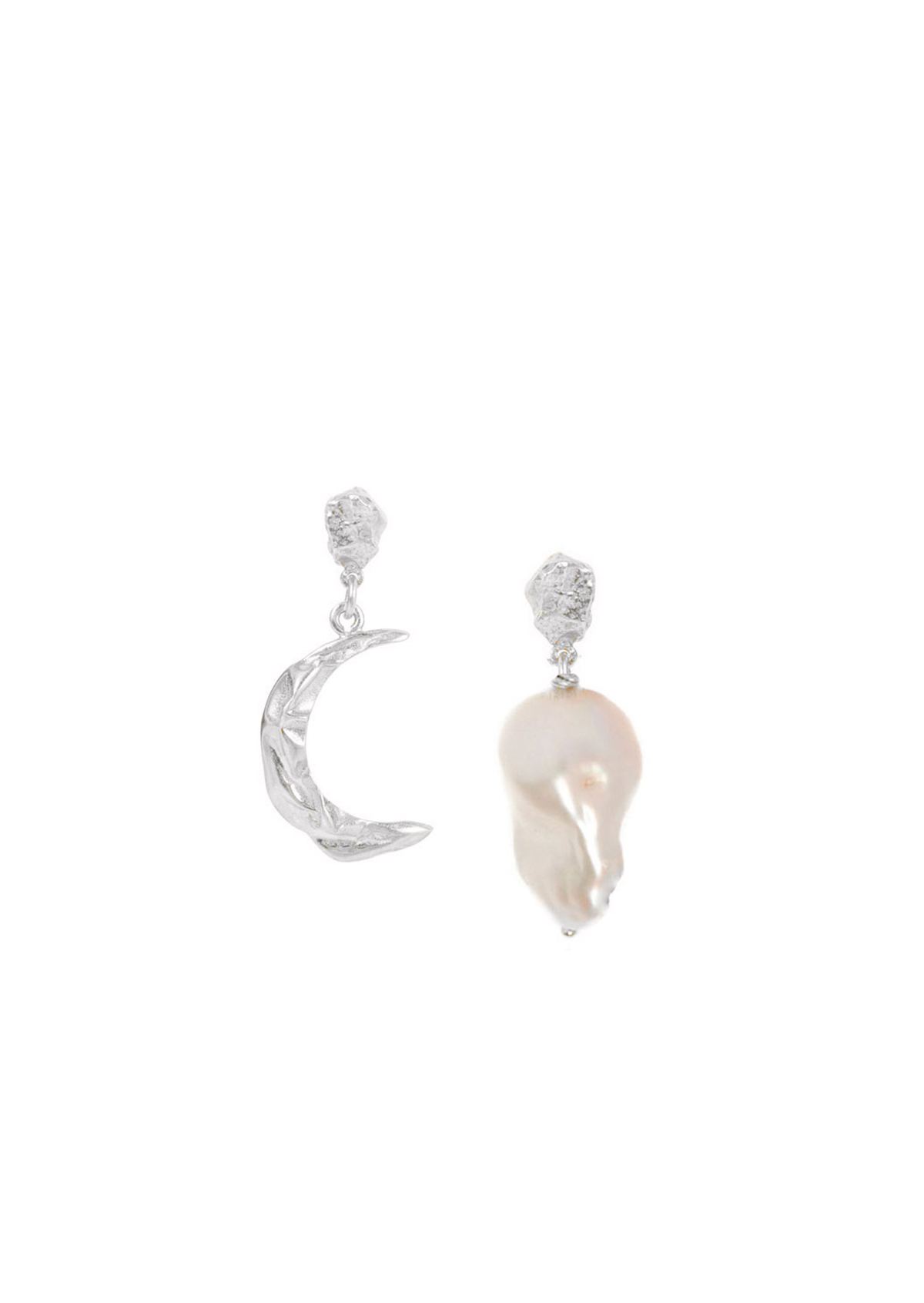 Dreamy duo: A hanging crescent moon paired with a chunky baroque pearl. This might just be the perfect earring combo!