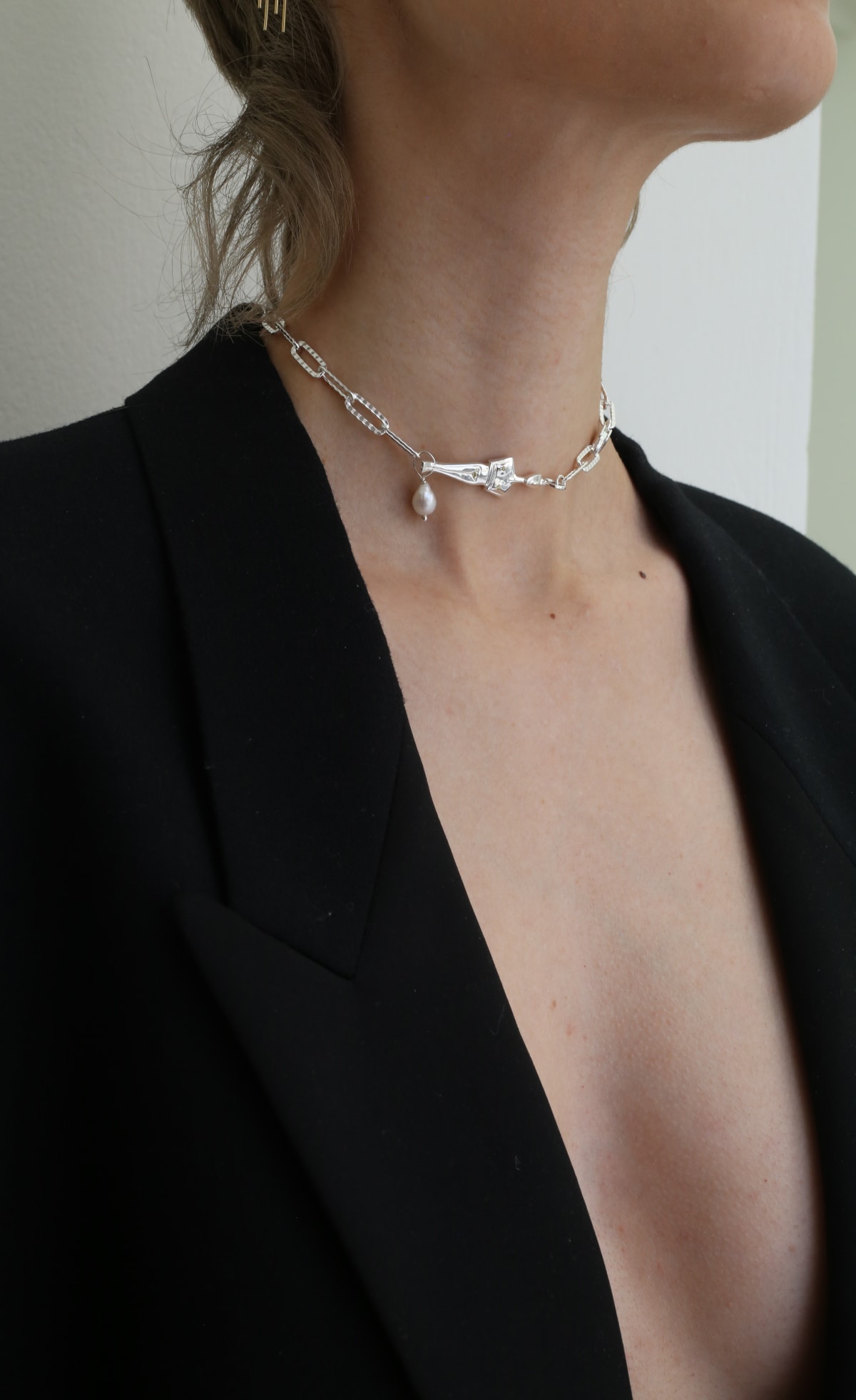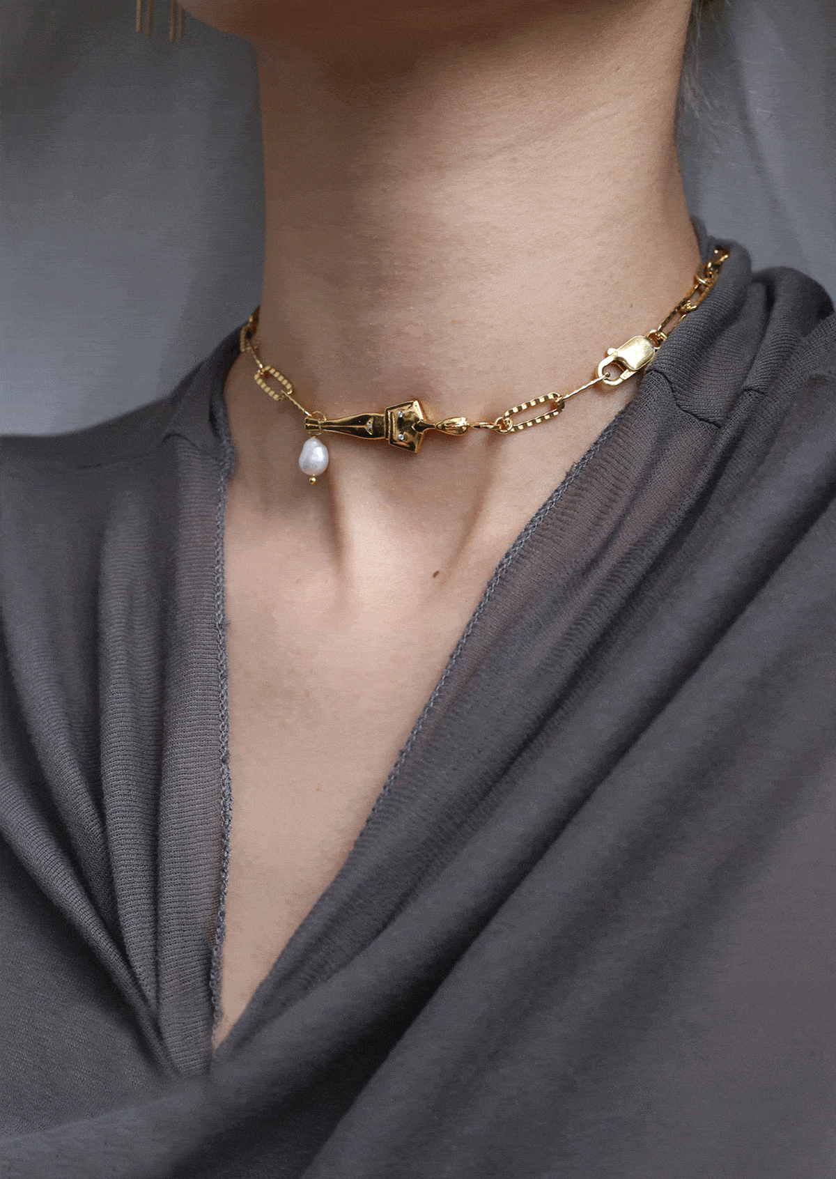 A versatile piece that you will enjoy from day to night, Inoe choker/bracelet is inspired by the Cycladic idols, the most evocative objects from Greek prehistory.