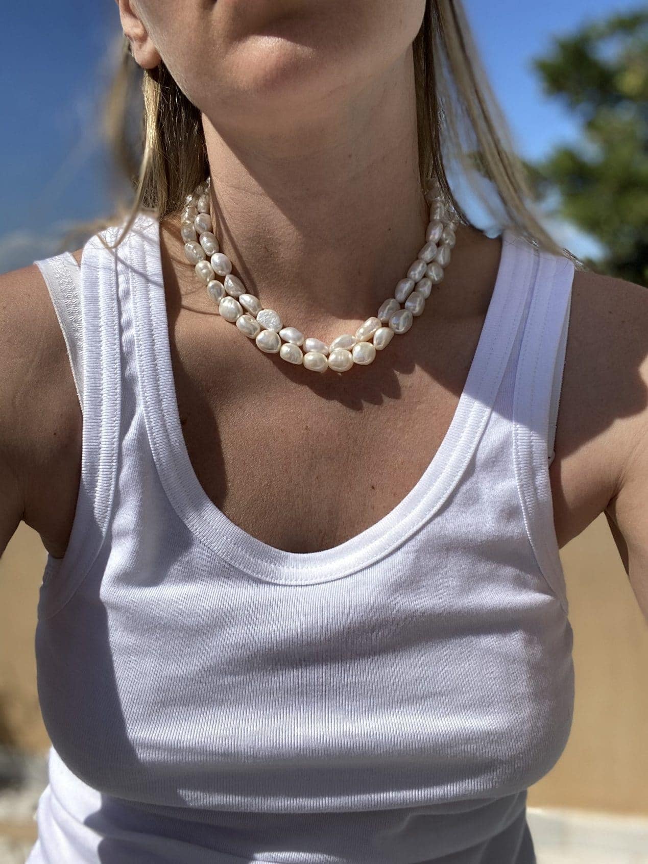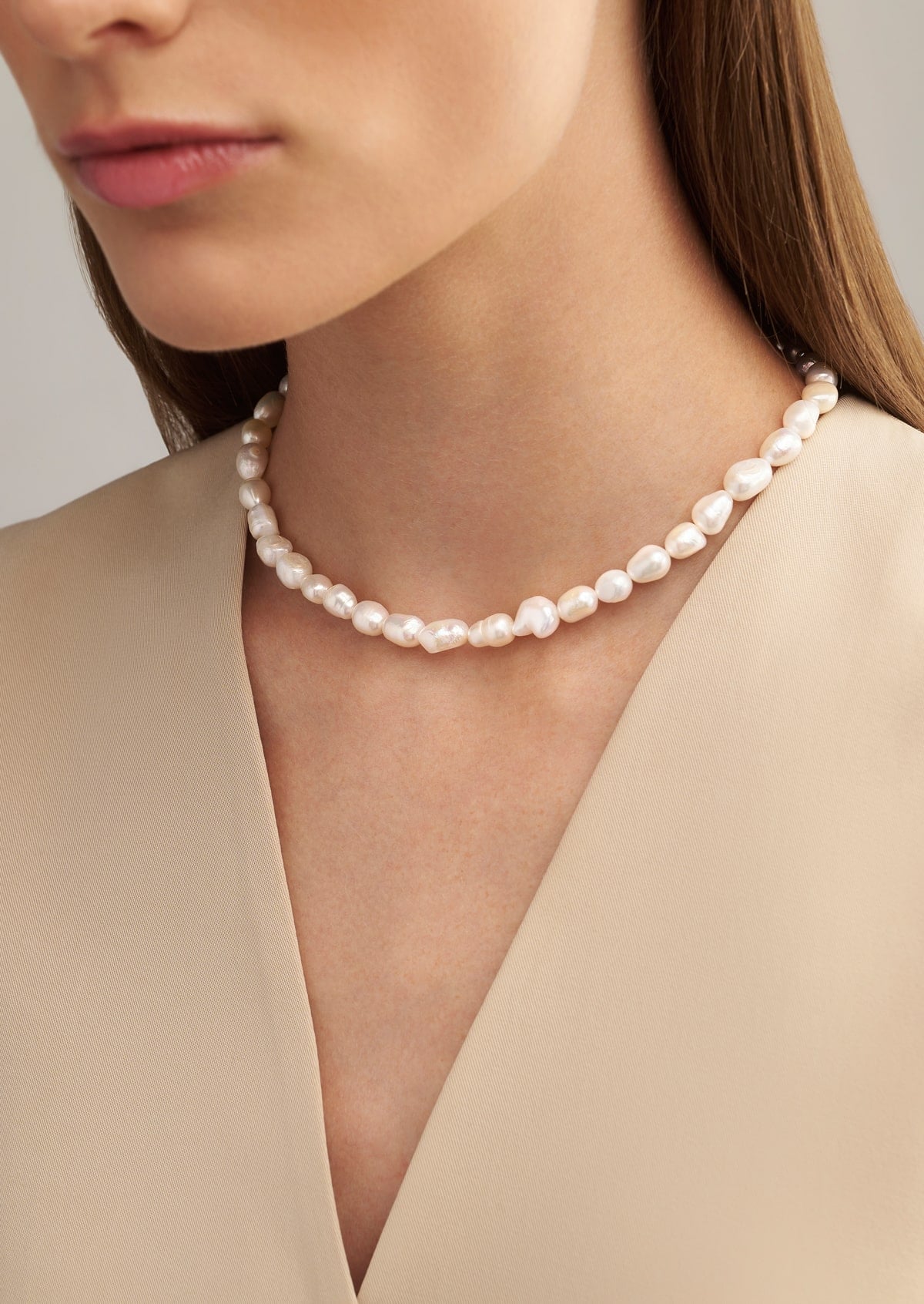 A chunky, oval pearl necklace that perfectly combines the timeless allure of pearls with contemporary jewelry design. Perfect for anyone, anytime, anywhere.