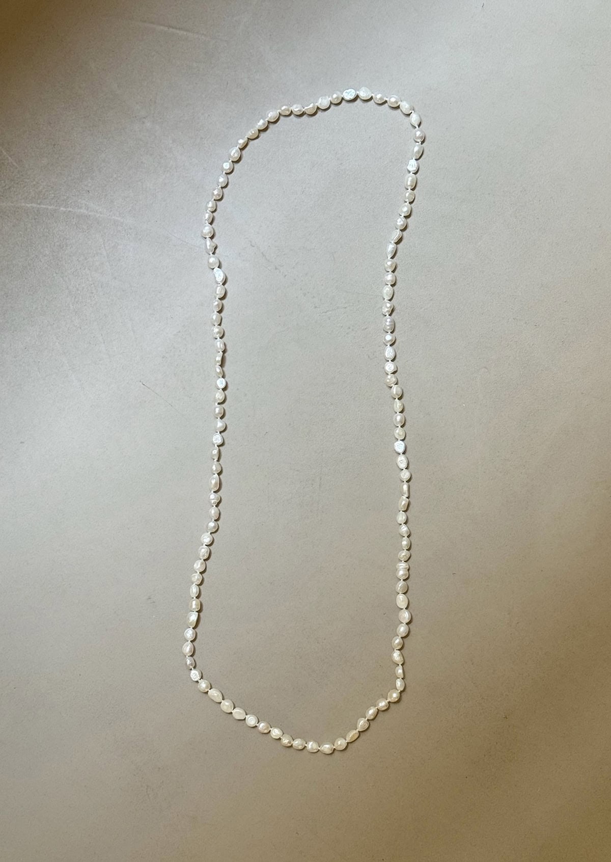 Timeless, versatile, and endlessly chic — the Vilma Pearl Long Necklace is a modern take on our classic Vilma Pearl Necklace. Featuring luminous pearls in an elegant long-line design, this piece is the definition of effortless sophistication. Its unique length allows for endless styling possibilities: wear it long for a sleek statement, wrap it for a layered look, or knot it for a touch of vintage flair.