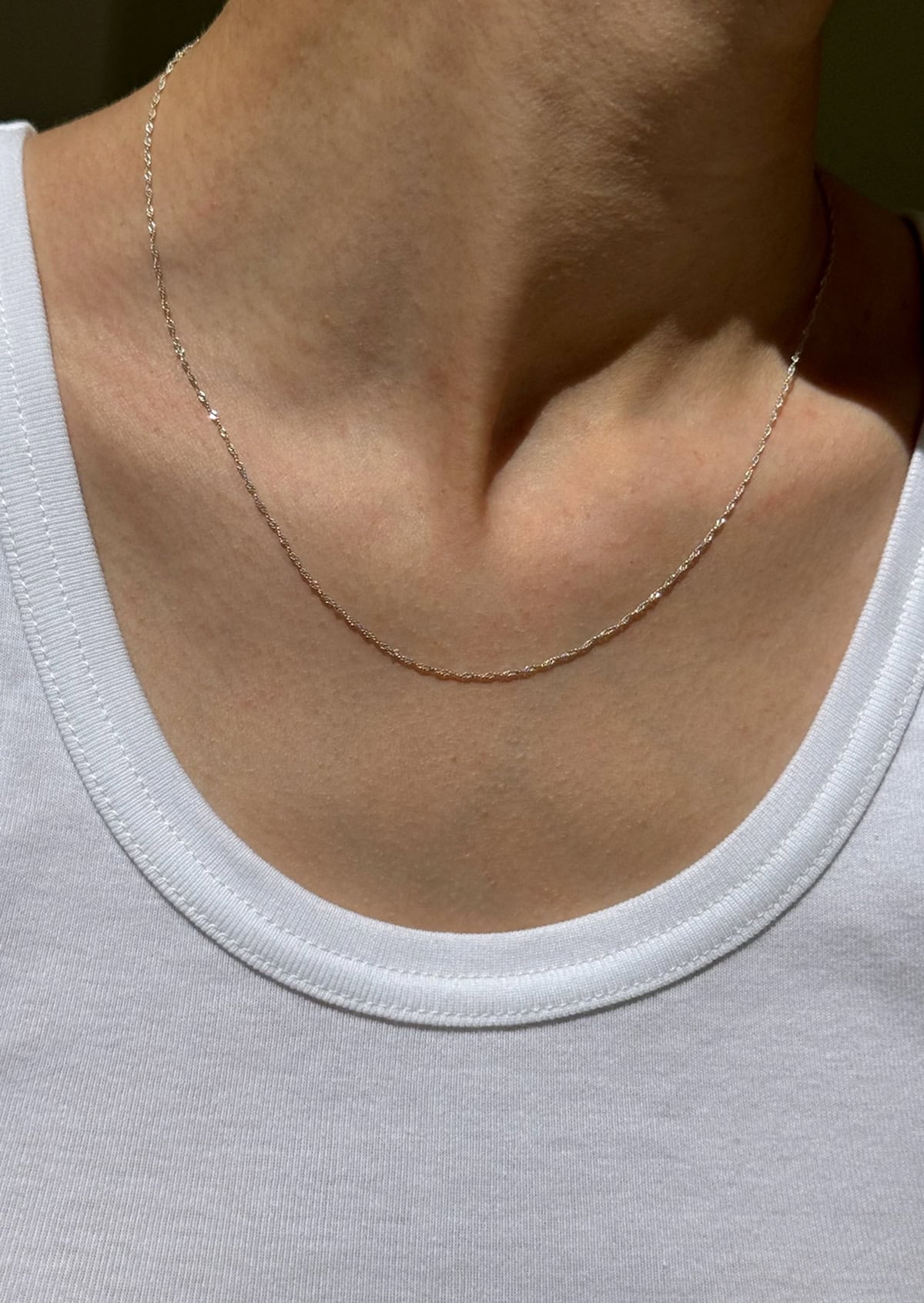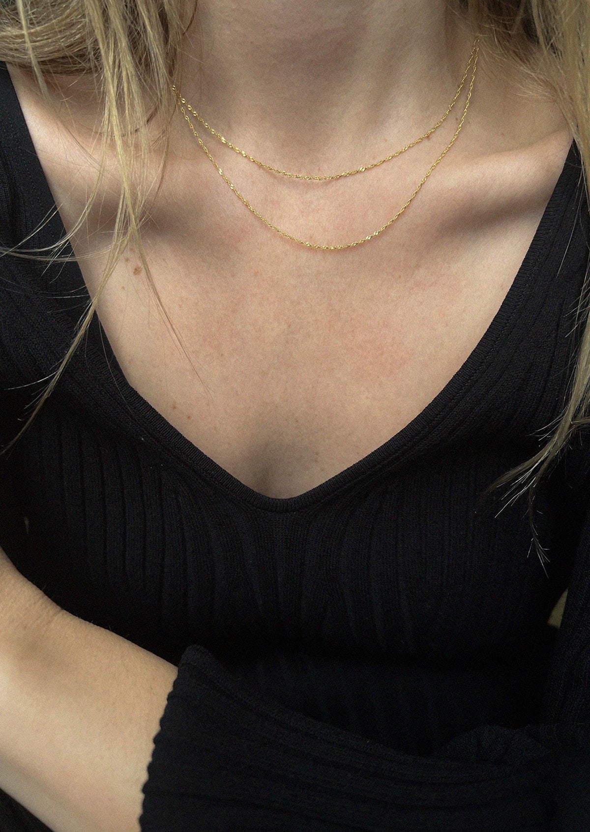 A delicate chain necklace available in your choice of length in silver or gold plated.