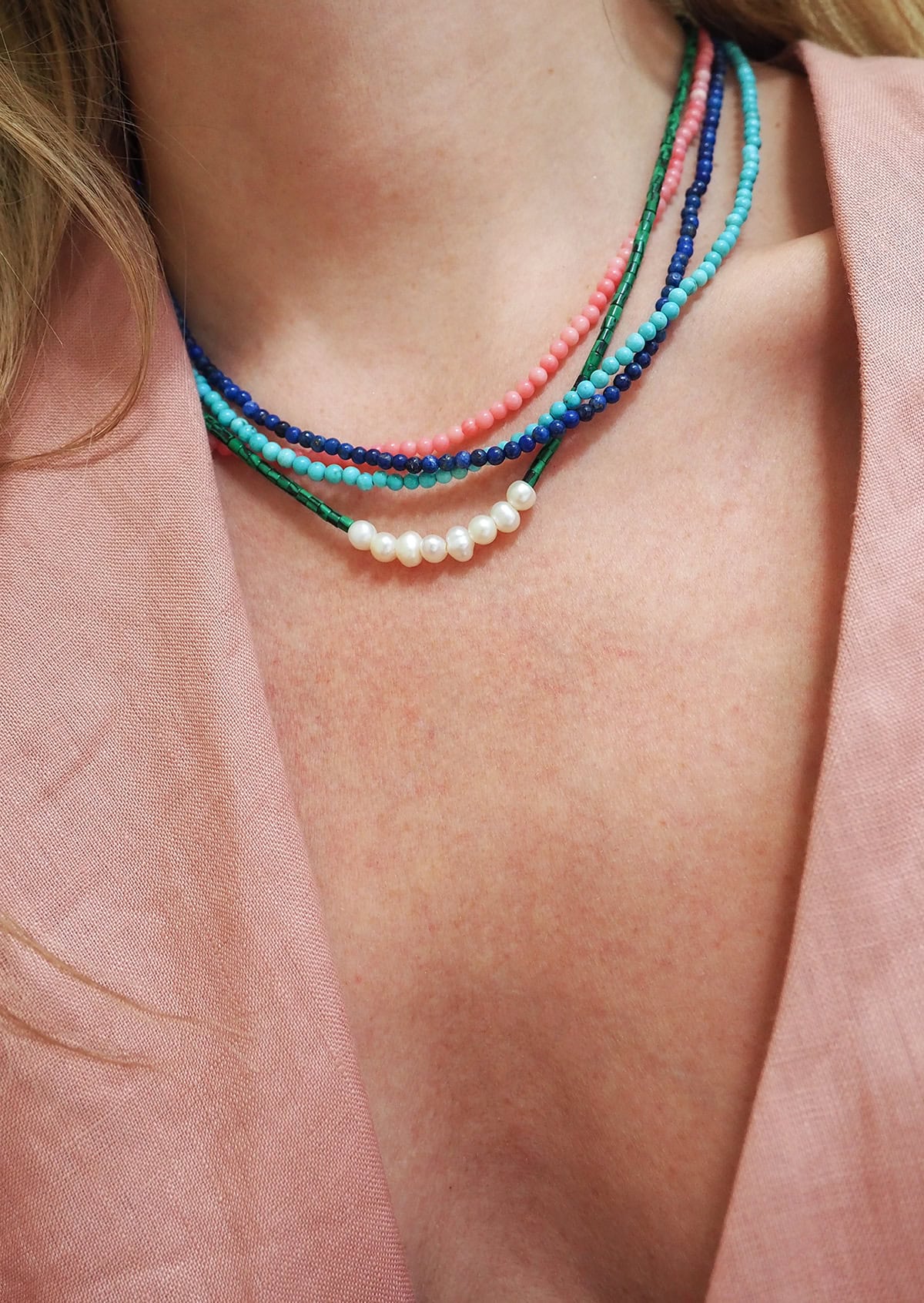 Strung with turquoise howlite semi-precious stones, this necklace is pure joy!