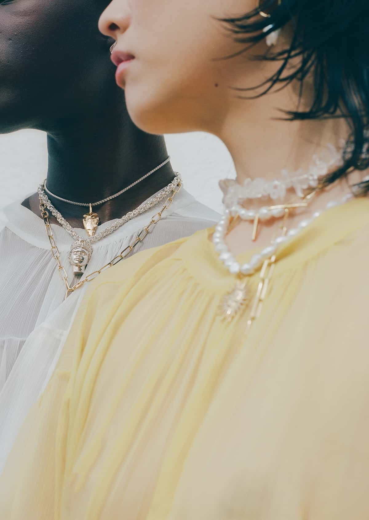 The Sun hanging from a Vilma pearl necklace. Glowy and feminine, pearls will always be relevant and make every look more put together.