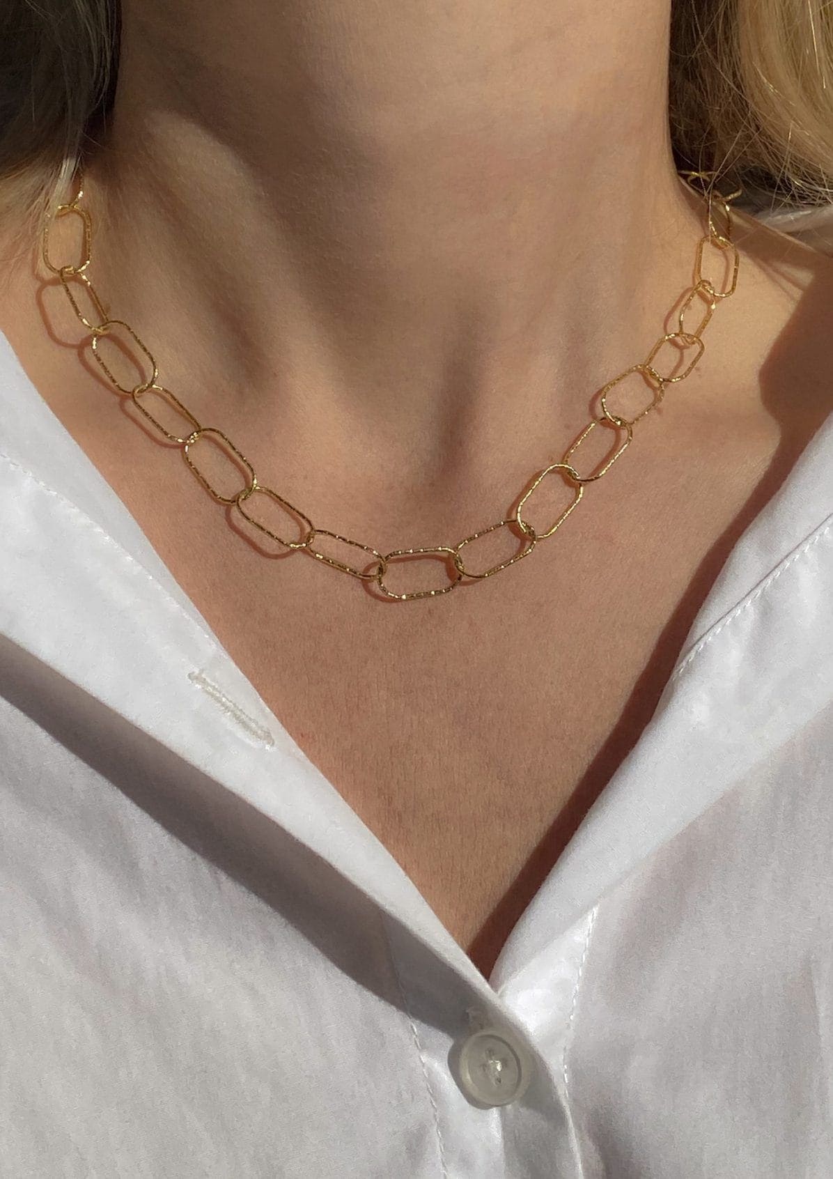 A wide paperclip fine chain that adds sophistication to any outfit.