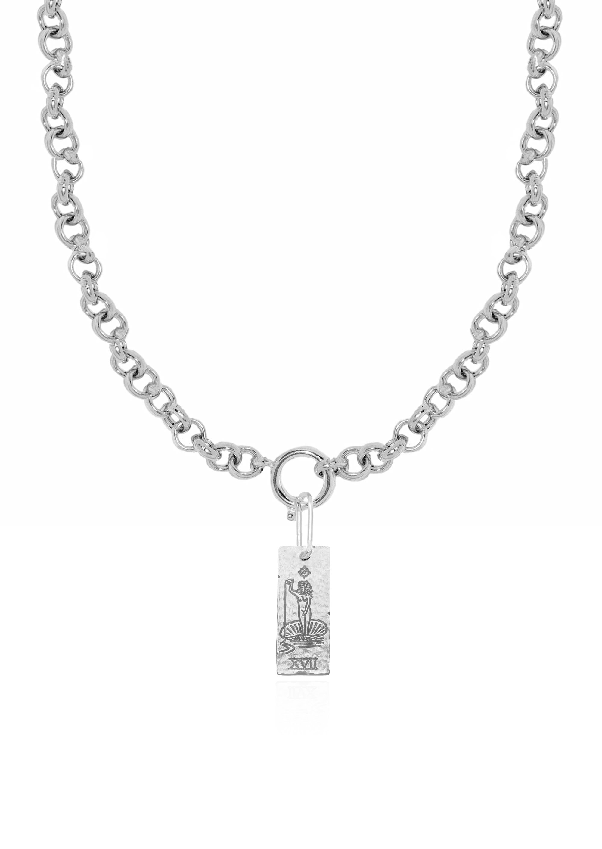 A circle chain necklace adorned with a charm depicting Aphrodite, thee ancient Greek goddess of love, beauty, and pleasure. An ultra-feminine piece charged with the allure of the ultimate beauty archetype. Jet-set jewelry.
