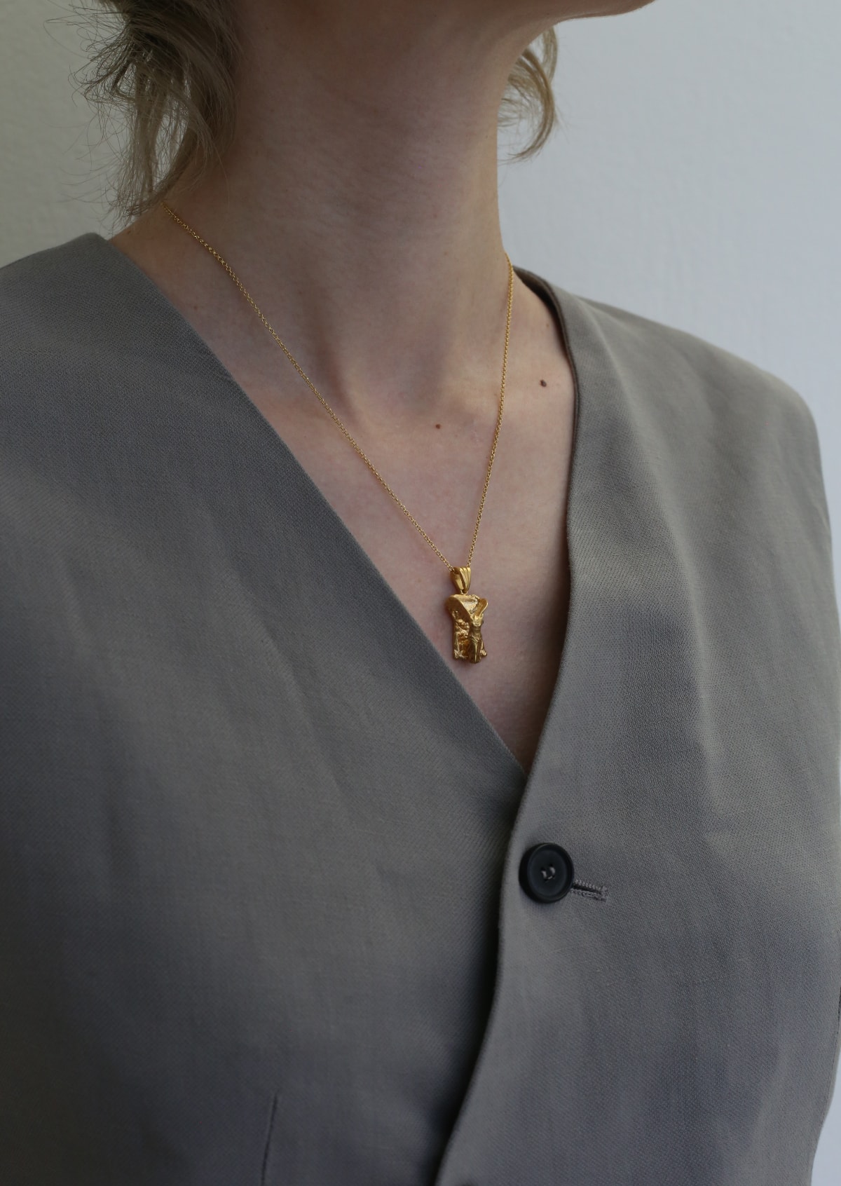 An angel-like figure of the Greek goddess of Victory, Nike, paired with a delicate chain necklace. The perfect base for layering.