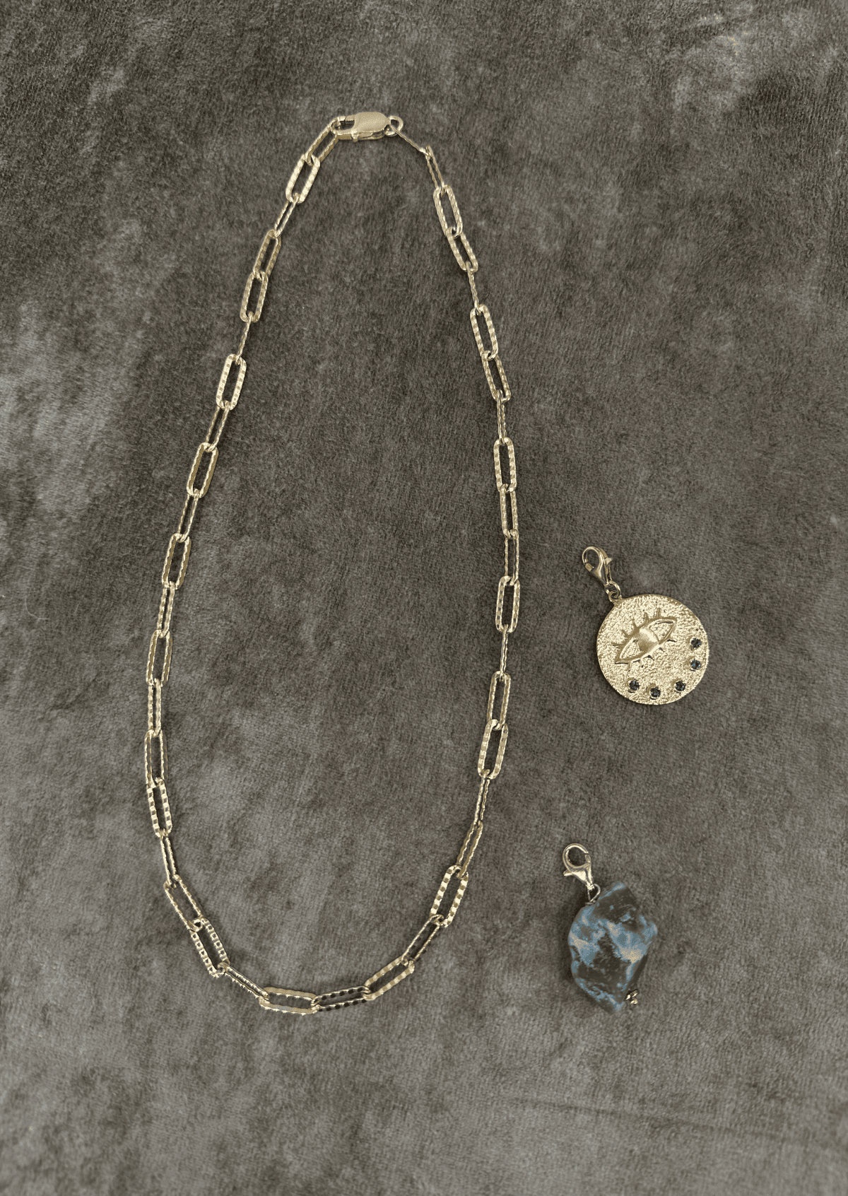 A deer green necklace, inspired by Paxos’ lush olive groves.